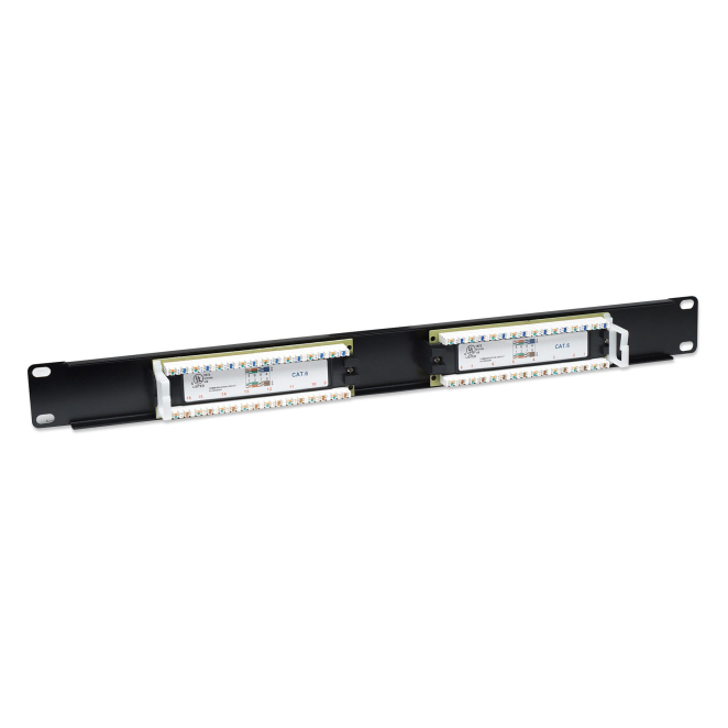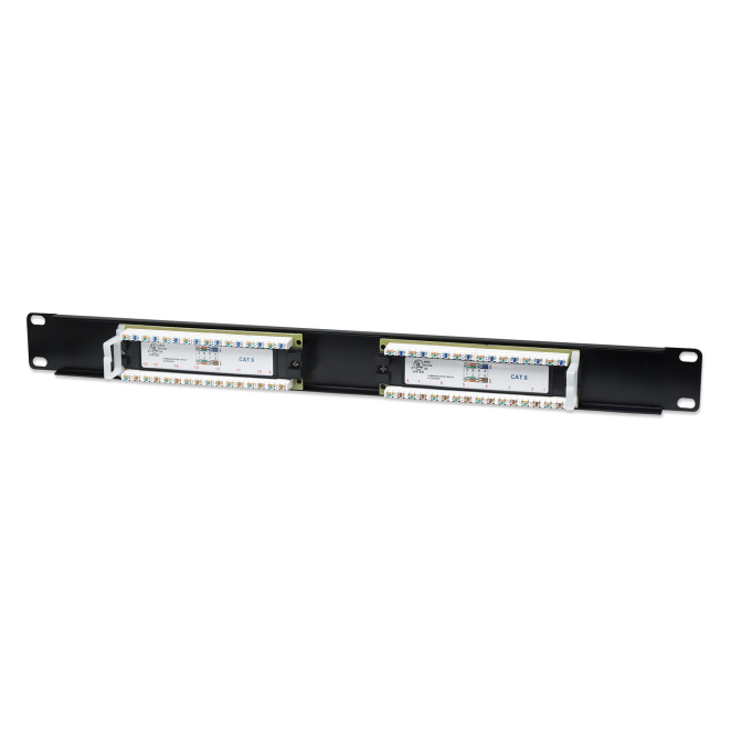 Imagen del panel de parcheo Intellinet 519526 de 1U y 24 puertos.