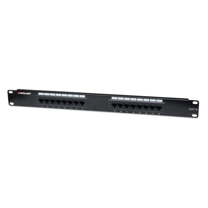 El Intellinet 519526 panel de parcheo 1U cuenta con 16 puertos RJ-45.