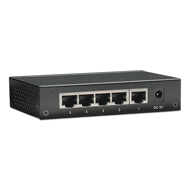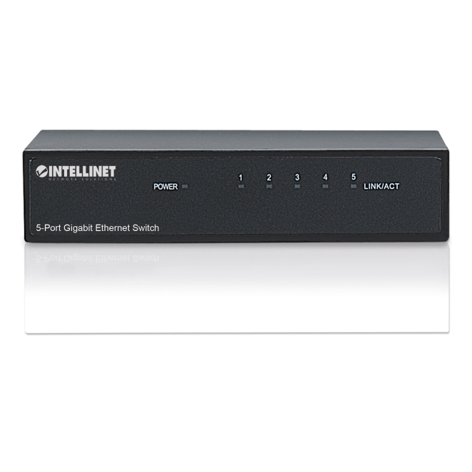 A continuación, respondemos algunas de las preguntas más frecuentes sobre el Intellinet 530378 switch Gigabit Ethernet (10/100/1000) negro para que tengas toda la información necesaria antes de tu compra. No, el switch es Plug and Play, lo cual significa que no requiere de configuración adicional para funcionar. El switch cuenta con cinco puertos Gigabit Ethernet (10/100/1000). Sí, este switch es ideal para manejo de grandes transferencias de datos y aplicaciones de uso intensivo de ancho de banda. El rango de temperatura operativa es de 0 a 40°C. Sí, el switch soporta control de flujo asegurando conectividad estable y sin interrupciones. Cantidad de puertos básicos de conmutación RJ-45 Ethernet 5 Puertos tipo básico de conmutación RJ-45 Ethernet Gigabit Ethernet (10/100/1000) Conector eléctrico Toma de entrada de CC Estándares de red IEEE 802.3, IEEE 802.3ab, IEEE 802.3az, IEEE 802.3u, IEEE 802.3x Soporte 10G No Bidireccional completo (Full duplex) Sí Soporte de control de flujo Sí Auto MDI / MDI-X Sí Tabla de direcciones MAC 1024 entradas Guardar y remitir Sí Jumbo Frames, soporte Sí Memoria intermedia de paquetes 0.112 MB MAC, filtro de direcciones Sí Apilable No Color del producto Negro Indicadores LED Si Fuente de alimentación incluida Sí Corriente de entrada 1 A Voltaje de entrada DC 5 V Intervalo de temperatura operativa 0-40 °C Intervalo de temperatura de almacenaje -20-90 °C Intervalo de humedad relativa para funcionamiento 10-90 % Ancho 140 mm Peso 310 g Profundidad 78 mm Altura 28 mm Manual de usuario Sí Certificación FCC Class B, CE, RoHS