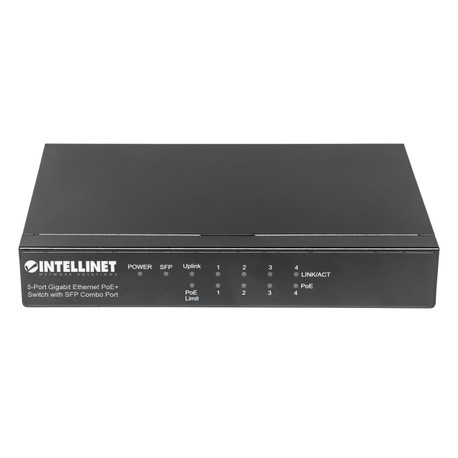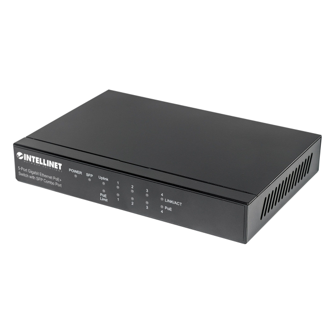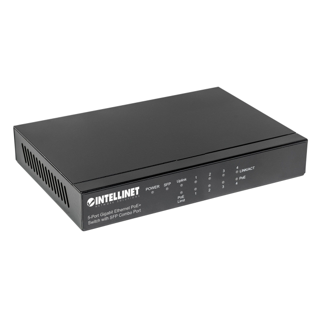 Intellinet switch Gigabit Ethernet modelo 561174, compatible con PoE, color negro