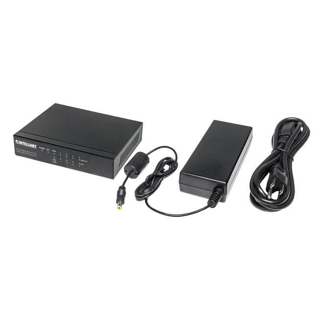 El Intellinet 561174 switch tiene cinco puertos básica de conmutación RJ-45 Ethernet que soportan velocidades de 10/100/1000 Mbps.