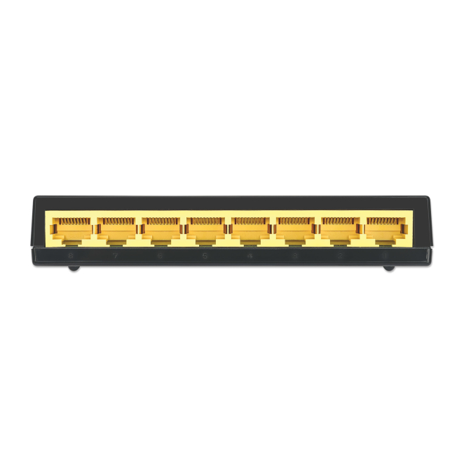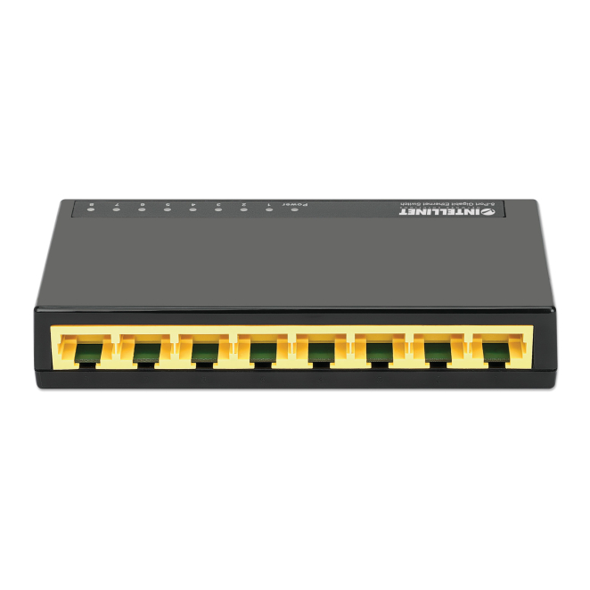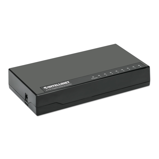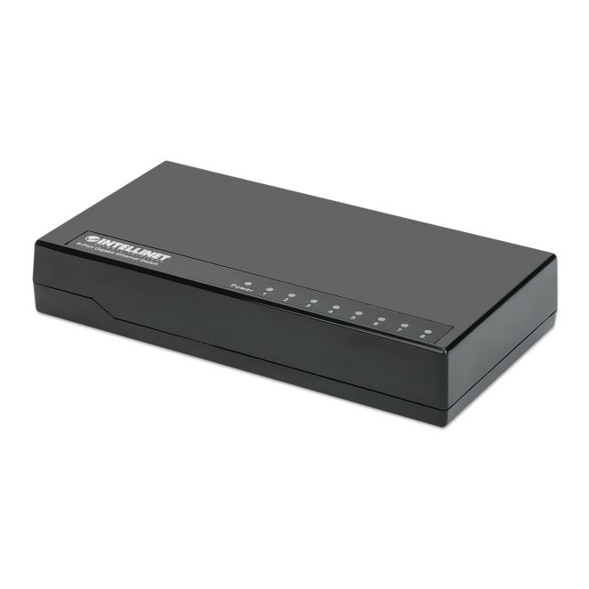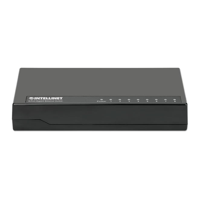 El Intellinet 561754 cuenta con 8 puertos de conmutación básicos RJ-45 Ethernet (10/100/1000).