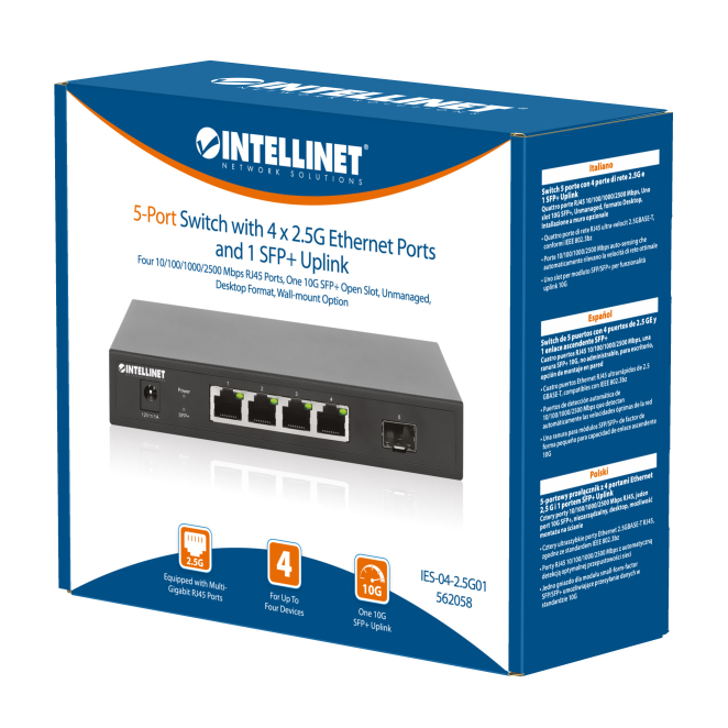 Intellinet 562058 switch no administrado 2.5G puertos traseros