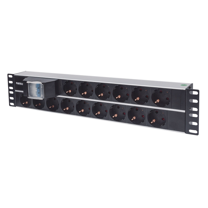 Intellinet 714051 unidad de distribución de energía (PDU) con 15 salidas AC, montura de 2U en aluminio y color negro