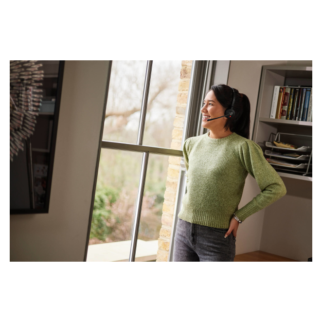 Gracias a su diseño ergonómico de diadema y almohadillas suaves, los Jabra ENGAGE 55 UC STEREO son cómodos incluso durante sesiones largas de trabajo.