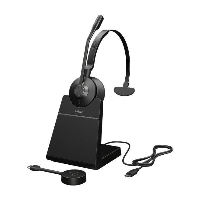 Hay múltiples razones para elegir los Jabra Engage 55 SE Auriculares Inalámbricos: Aquí encontrarás respuestas a las preguntas más comunes sobre los Jabra Engage 55 SE Auriculares Inalámbricos: Los Jabra Engage 55 SE ofrecen hasta 13 horas de tiempo de conversación con una sola carga. Los Jabra Engage 55 SE utilizan tecnología DECT para su conectividad inalámbrica, garantizando una excelente calidad de sonido y seguridad. Sí, los Jabra Engage 55 SE están diseñados pensando en la comodidad, facilitando el uso prolongado gracias a su diseño ergonómico y ligero. Sí, los Jabra Engage 55 SE están optimizados para UC y son compatibles con aplicaciones como Jabra Direct, Jabra SDK, y Jabra Xpress. Los Jabra Engage 55 SE ofrecen una sólida seguridad DECT de nivel C, asegurando que tus comunicaciones estén protegidas. Tipo de producto Auriculares Estilo de uso Diadema Uso recomendado Oficina/Centro de llamadas Color del producto Negro Control de volumen Botón Tipo de controles On-ear control unit Tecnología de conectividad Inalámbrico Alcance inalámbrico 150 m Respuesta de frecuencia (modo música) 40-16000 Hz Audifonos Supraaural Frecuencia de auricular 40-16000 Hz Tipo de micrófono Boom Tipo de dirección de micrófono Unidireccional Color de la base de transmisión y carga Negro Conector USB de la estación base USB Tipo C Tipo de batería Batería integrada Tecnología de batería Ión de litio Batería recargable Sí Peso 57 g Ancho del paquete 236 mm Profundidad del paquete 104 mm Altura del paquete 172.5 mm Cantidad 1 Estación base Sí Cables incluidos USB tipo A a USB tipo C