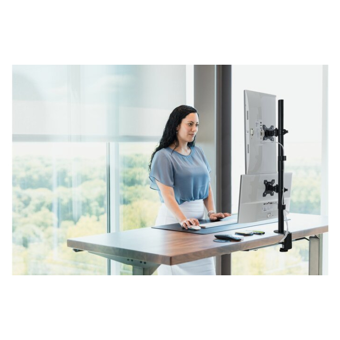 El Brazo vertical para dos monitores Kensington es compatible con monitores de 13 a 32 pulgadas y soporta un peso máximo de 9 kg por monitor.