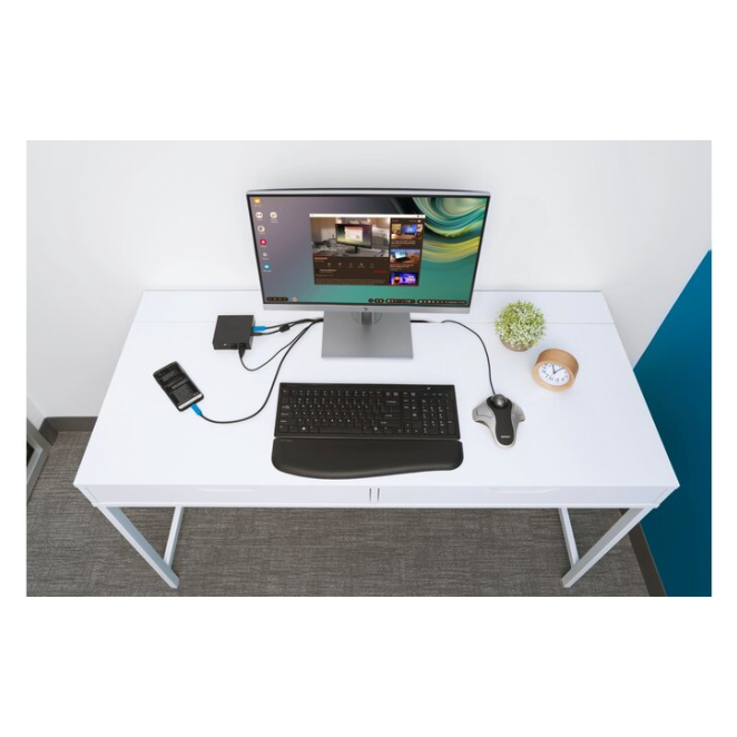 Elegir el Kensington Slim Type Wireless Keyboard es una decisión que aporta múltiples beneficios a tu entorno de trabajo. Aquí te presentamos algunas razones: Elimina los cables de tu escritorio y disfruta de la libertad de movimiento gracias a su tecnología RF. Su perfil delgado y moderno no solo ahorra espacio, sino que también aporta un toque de elegancia a tu oficina. Con su receptor USB tipo A incluido, conectar tu teclado es cuestión de segundos, sin complicaciones. El perfil bajo y el diseño ergonómico aseguran una experiencia de escritura cómoda y sin fatiga. Teclado completo con teclado numérico, ideal para tareas que requieren mucha escritura y cálculos.