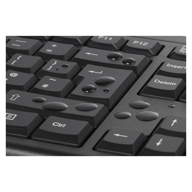 La membrana sellada del teclado protege los componentes internos de cualquier líquido.