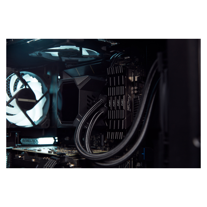 El disipador térmico en aluminio negro ayuda a gestionar el calor generado por la memoria durante operaciones intensivas, asegurando un rendimiento estable y prolongado.