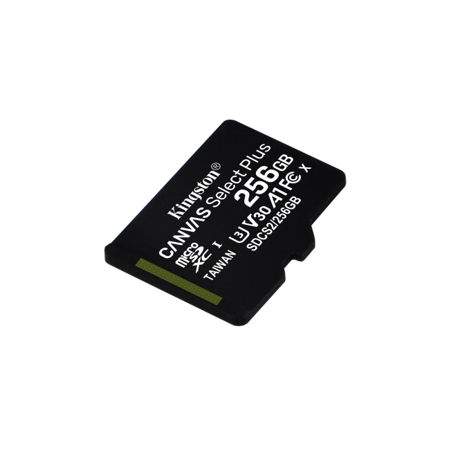 La Kingston Technology paquete de una tarjeta micSDXC Canvas Select Plus 100R A1 C10 de 256 GB sin ADP cuenta con una velocidad de lectura máxima de 100 MB/s y una velocidad de escritura de hasta 85 MB/s.