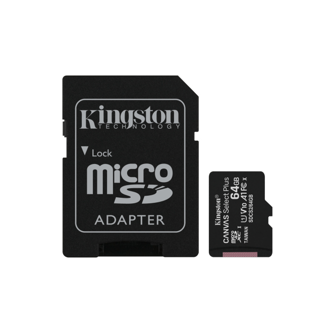 Kingston Technology Canvas Select Tarjeta microSDHC Plus 100R A1 C10 de 64 GB + ADP empaquetada