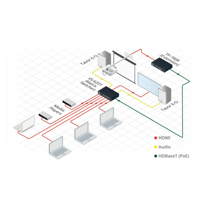La tecnología HDBaseT permite la transmisión a largas distancias sin pérdida de señal.
