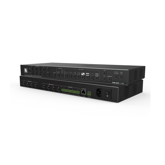 Además, cuenta con 4 puertos de entrada y 4 puertos de salida HDMI, haciendo del Kramer VSM-4x4X una opción ideal para diversas aplicaciones audiovisuales. Su capacidad de montaje en rack de 1U y su estructura robusta de aluminio garantizan durabilidad y facilidad de instalación.