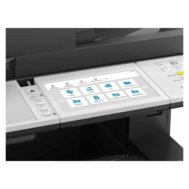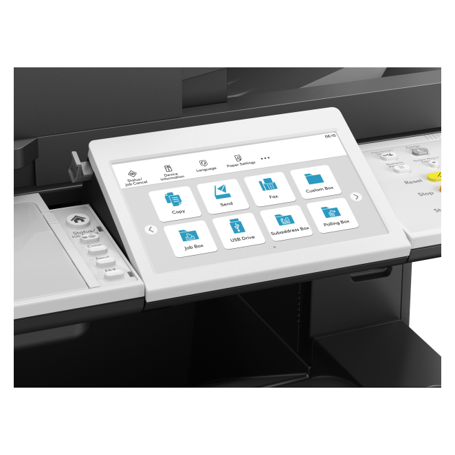 Utilizar la KYOCERA ECOSYS MA6000ifx es una experiencia única gracias a su pantalla LCD táctil de fácil manejo, que simplifica cada operación. Los usuarios apreciarán la velocidad de calentamiento de solo 25 segundos y un tiempo hasta la primera página de apenas 4.5 segundos. Además, su bajo nivel de presión acústica durante la impresión (58 dB) asegura un entorno de trabajo tranquilo y sin interrupciones.