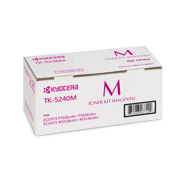 El tóner KYOCERA TK-5240M es compatible con los modelos ECOSYS M5526cdw, ECOSYS M5526cdn, ECOSYS P5026cdn y ECOSYS P5026cdw.