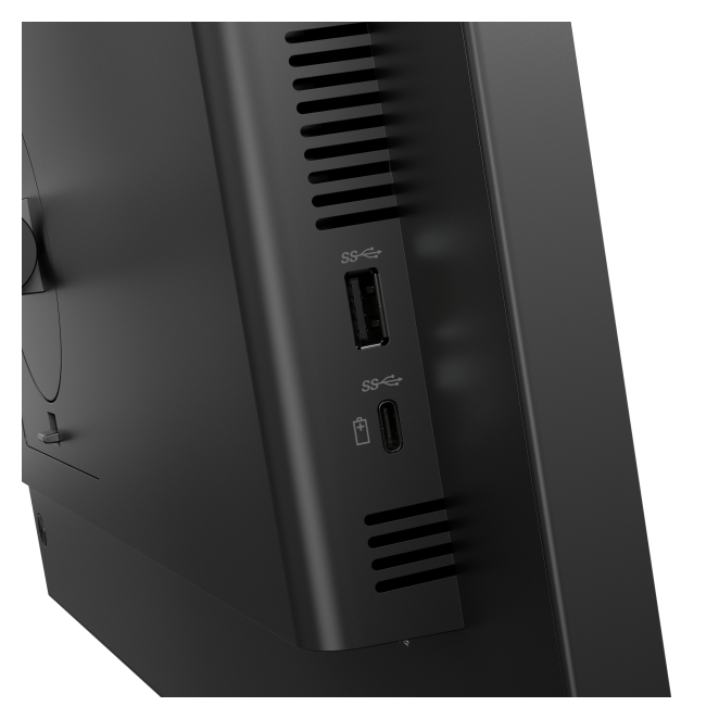 El monitor incluye puertos HDMI, DisplayPort, y múltiples puertos USB, incluyendo USB-C.