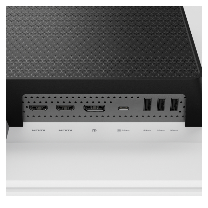 La pantalla incluye puertos USB Tipo C, HDMI y DisplayPort, además de múltiples puertos USB descendentes de tipo A.