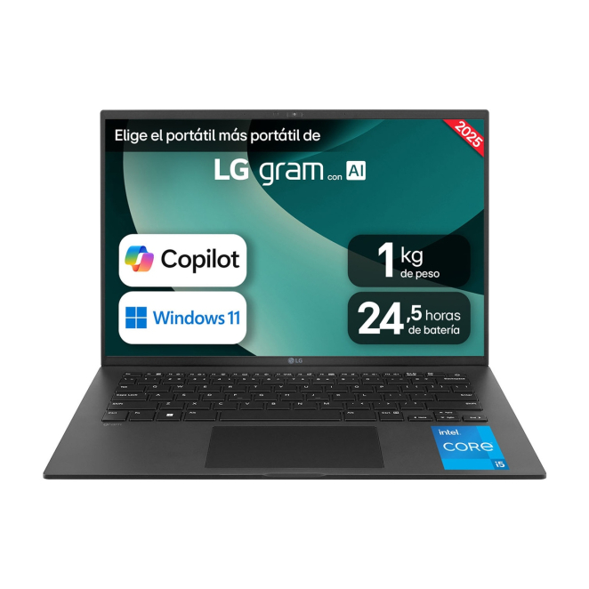 LG 14Z90RU-G.AP55B, ordenador portátil de 14 pulgadas con procesador Intel Core i5-1334U, 16 GB de RAM LPDDR4x-SDRAM, 512 GB SSD, Wi-Fi 6E y Windows 11 Pro en color negro. SKU: 14Z90RU-G.AP55B Este producto se puede comprar bajo demanda. Financiado desde: 72,46 € /mes Solicita información en caso de necesitar envío urgente. Métodos de pago: LG 14Z90RU-G.AP55B: El Portátil Ideal para Profesionales El LG 14Z90RU-G.AP55B es un portátil de alta gama diseñado para ofrecer un rendimiento excepcional en un formato ligero y compacto. Con un potente procesador Intel® Core™ i5 de 13ª generación y 16 GB de RAM LPDDR4x-SDRAM, este laptop LG 14Z90RU es perfecto para realizar múltiples tareas sin esfuerzo. Además, su disco SSD de 512 GB proporciona espacio de almacenamiento rápido y eficiente. Ideal para profesionales y estudiantes que buscan rendimiento y portabilidad en sus computadoras. Rendimiento Superior: El LG 14Z90RU-G.AP55B cuenta con el potente procesador Intel® Core™ i5 de 13ª generación y gráficos Intel Iris Xe, ideal para aplicaciones exigentes y multitarea. El LG 14Z90RU-G.AP55B es ideal para profesionales del diseño, estudiantes universitarios y cualquier persona que necesite un rendimiento fiable sin comprometer la portabilidad. Gracias a su capacidad de almacenamiento de 512 GB y 16 GB de RAM, este ultrabook LG 14Z90RU puede manejar desde tareas cotidianas hasta aplicaciones demandantes de manera eficiente. Perfecto también para viajeros frecuentes que requieren un dispositivo ligero y con batería duradera. El LG 14Z90RU-G.AP55B ofrece una experiencia de usuario superior gracias a su diseño ergonómico y ligero. La pantalla mate WUXGA con retroiluminación LED proporciona una visualización clara y sin reflejos, mientras el teclado retroiluminado asegura comodidad durante el trabajo nocturno. Con Windows 11 Pro preinstalado, la interfaz es intuitiva y fácil de usar. Además, la combinación de puertos Thunderbolt 4, Wi-Fi 6E, y Bluetooth 5.1 garantiza que siempre estés conectado y productivo. El LG 14Z90RU-G.AP55B es perfecto para quienes buscan un portátil de alto rendimiento, ligero y con una excelente duración de batería. A continuación, respondemos algunas de las preguntas más comunes acerca del LG 14Z90RU-G.AP55B: Aunque no es un portátil específicamente diseñado para juegos de alta demanda, el LG 14Z90RU-G.AP55B con gráficos Intel Iris Xe puede manejar juegos de nivel medio y trabajos gráficos profesionales. El LG 14Z90RU-G.AP55B tiene una batería de 72Wh que dura hasta 24.5 horas, ofreciendo una excelente portabilidad para trabajos fuera de la oficina. Sí, el LG 14Z90RU-G.AP55B viene con un teclado retroiluminado, perfecto para trabajar en condiciones de poca luz. Sí, el LG 14Z90RU-G.AP55B soporta carga rápida, permitiendo que el dispositivo esté listo para el uso en menos tiempo. Incluye 2 puertos Thunderbolt 4, un puerto HDMI, un combo de salida de auriculares/micrófono, un USB 3.2 Gen 2 tipo A y un puerto de carga USB tipo C. Nombre del color Obsidian Black Tipo de producto Portátil Color del producto Negro Factor de forma Concha Material de la carcasa Magnesio Posicionamiento de mercado Premium Diagonal de la pantalla 14 " Resolución de la pantalla 1920 x 1200 Pixeles Pantalla táctil No Tipo HD WUXGA Tipo de pantalla IPS Retroiluminación LED Sí Relación de aspecto nativa 16:10 Superficie de la pantalla Mate Pantalla antirreflectante Sí Superficie de la pantalla Mate Brillo de pantalla 350 cd / m² Espacio de color RGB DCI-P3 Gama de colores 99 % Máxima velocidad de actualización 60 Hz Fabricante de procesador Intel Familia de procesador Intel® Core™ i5 Generación del procesador Intel® Core™ i5 de 13ma Generación Modelo del procesador i5-1334U Número de núcleos de procesador 10 Número de hilos de ejecución 12 Núcleos de rendimiento 2 Núcleos de eficiencia 8 Frecuencia del procesador turbo 4.6 GHz Frecuencia turbo máxima del núcleo de rendimiento 4.6 GHz Frecuencia turbo máxima del núcleo de eficiencia 3.4 GHz Caché del procesador 12 MB Tipo de cache en procesador Smart Cache Potencia base del procesador 15 W Potencia turbo máxima 55 W Memoria interna 16 GB Tipo de memoria interna LPDDR4x-SDRAM Velocidad de memoria del reloj 4266 MHz Factor de forma de disco SSD M.2 Canales de memoria Doble canal Capacidad total de almacenaje 512 GB Unidad de almacenamiento SSD Capacidad total de SSD 512 GB SDD, capacidad 512 GB Número de unidades SSD instalados 1 Interfaces del SDD PCI Express 4.0 NVMe Sí Factor de forma de disco SSD M.2 Tipo de unidad óptica No Tarjeta de lectura integrada Sí Tarjetas de memoria compatibles MicroSD (TransFlash) Modelo de adaptador de gráficos discretos No disponible Adaptador gráfico incorporado Sí Fabricante de GPU (unidad de procesamiento gráfico) integrada Intel Adaptador de gráficos discreto No Modelo de adaptador gráfico incorporado Intel Iris Xe Graphics Sistema de audio Dolby Atmos Potencia de altavoz 1.5 W Número de altavoces incorporados 2 Cámara frontal Sí Tipo de cámara frontal HD HD Estándar Wi-Fi Wi-Fi 6E (802.11ax) Wi-Fi estándares Wi-Fi 6E (802.11ax) Conexión a red móvil No Modelo de controlador WLAN Intel Wi-Fi 6E AX211 Ethernet Sí Ethernet LAN, velocidad de transferencia de datos 10 Mbit/s, 100 Mbit/s, 1000 Mbit/s Bluetooth Sí Versión de Bluetooth 5.1 Número de puertos HDMI 1 Número de puertos Thunderbolt 4 2 Intel® Thunderbolt 4 Sí Combo de salida de auriculares / micrófono del puerto Sí Dispositivo apuntador Touchpad Idioma del teclado Inglés Teclado numérico Sí Retroiluminación de teclado Sí Arquitectura del sistema operativo 64 bits Sistema operativo instalado Windows 11 Pro Tecnología de batería Ión de litio Capacidad de batería 72 Wh Carga rápida Sí Potencia de adaptador AC 65 W Suministro de potencia USB Sí Puerto de carga USB tipo C Sí Enchufe de entrada de CC Sí Reconocimiento de cara Sí Windows Hello Sí Módulo de p