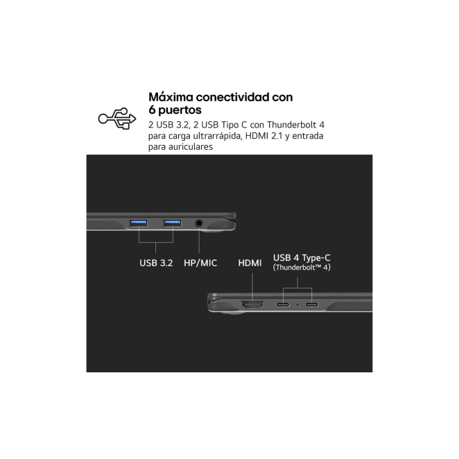 Rendimiento Superior: Equipado con un potente AMD Ryzen AI 7 350, el LG Gram ejecuta aplicaciones de manera fluida y eficiente.