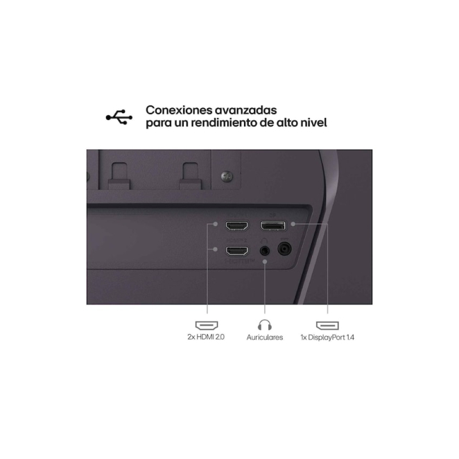 El LG 27G610A-B dispone de múltiples opciones de conectividad, incluyendo dos puertos HDMI, un DisplayPort y una salida de auriculares.