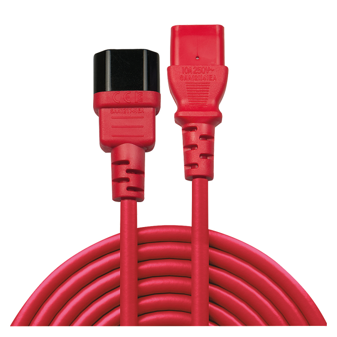 Cable de transmisión de 0,5 metros Lindy con acopladores C14 y C13, colores negro y rojo, SKU 30476