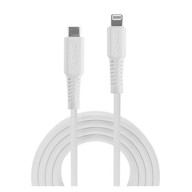 Cable de conector Lightning Lindy de 0,5 metros en color blanco, modelo 31315 para dispositivos Apple