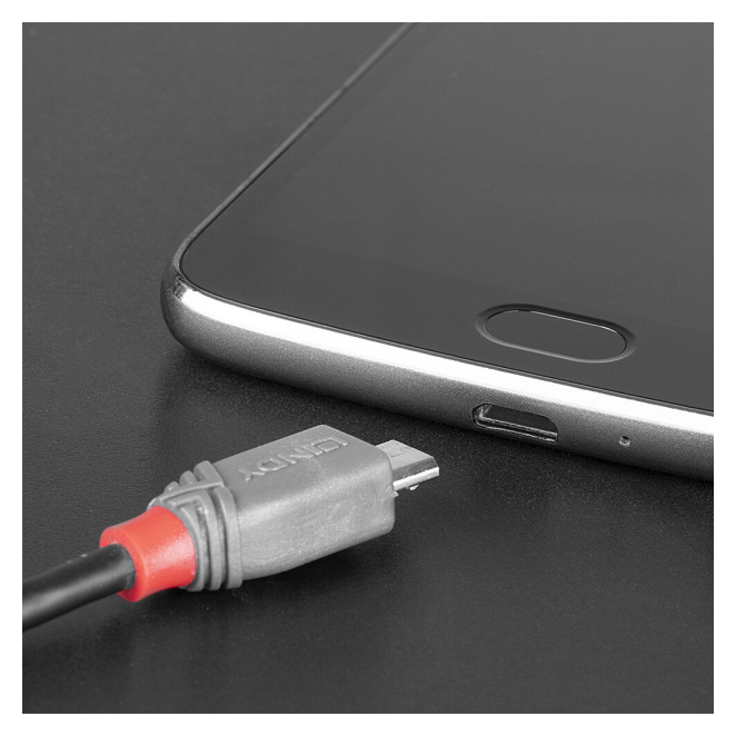Cable USB C a Micro-USB B de 2 metros Negro y Gris – Lindy 36892