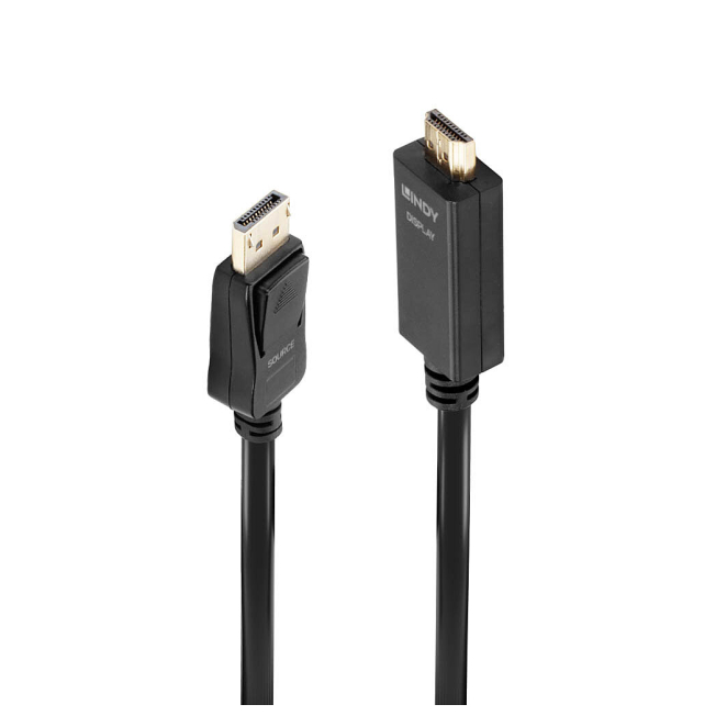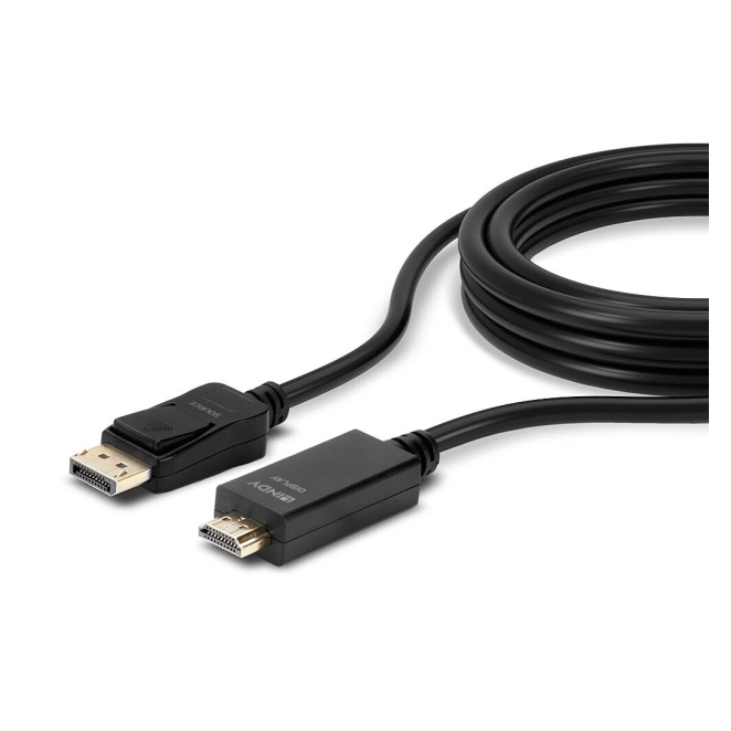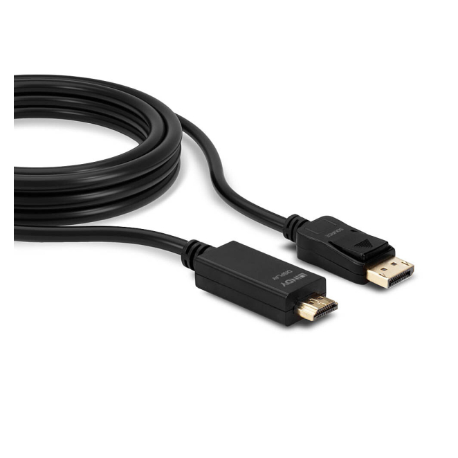 Adaptador de cable de vídeo Lindy, modelo 36923, con 3 metros de longitud, compatible con DisplayPort a HDMI tipo A en color negro