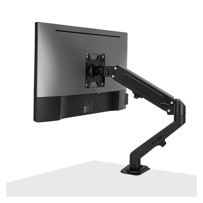 Soporte para monitor de escritorio Lindy de 27 pulgadas, color negro, SKU 40707.