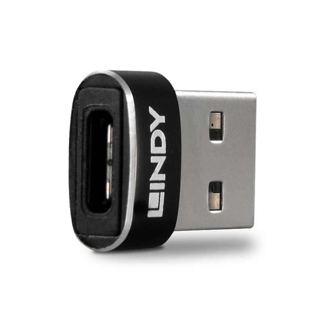 Adaptador de género para cable USB Type-A a USB Type-C, color negro, Lindy 41884