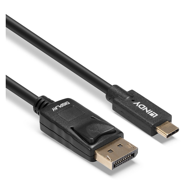 Adaptador de video Lindy 43305 de 5 metros, USB Tipo C a DisplayPort en color negro