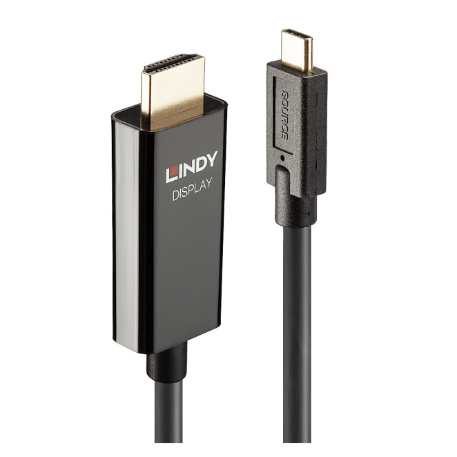 Adaptador de cable de vídeo Lindy 43317 de 10m, USB Tipo C a HDMI tipo A (Estándar), Negro