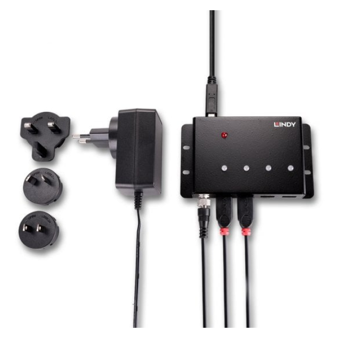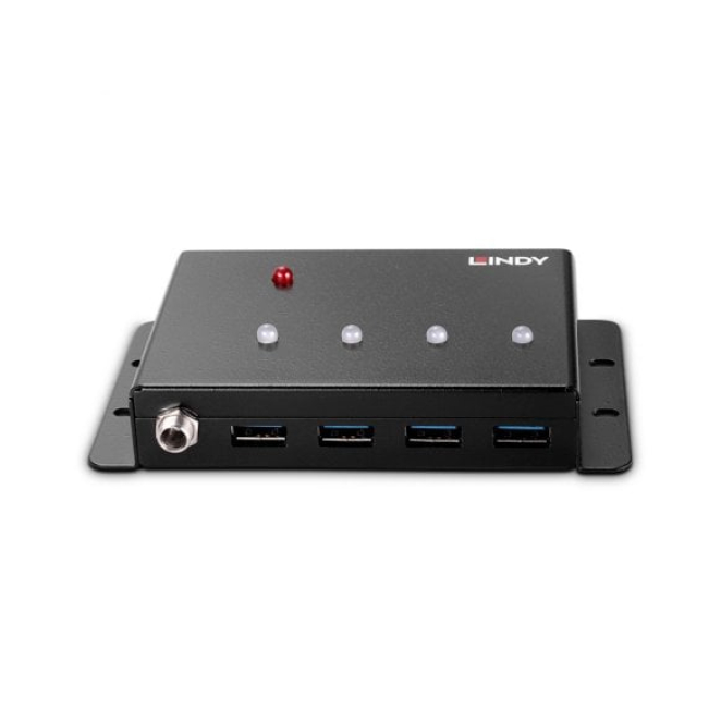 Lindy 43374 hub de interfaz USB 3.2 Gen 1 (3.1 Gen 1) Type-B con una velocidad de 5000 Mbit/s en color negro. SKU 43374