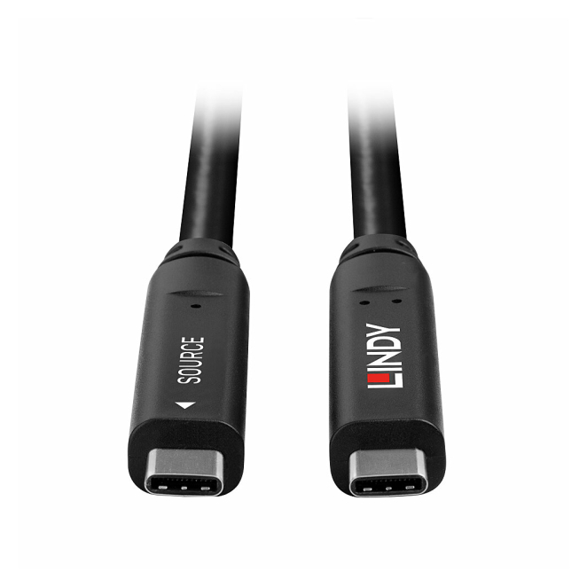 Imagen del cable Lindy 43398 USB 3.2 Gen 1 de 10 metros, con conector Tipo C en color negro