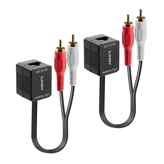 Transmisor de señales AV Lindy 70460 en colores negro, rojo y blanco con capacidad de extensión de audio/video