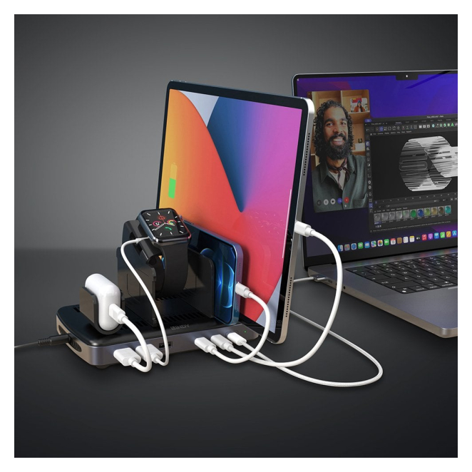 Lindy 73436 organizador para estación de carga Independiente Aluminio, Plástico Negro, Gris