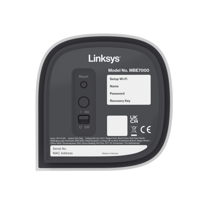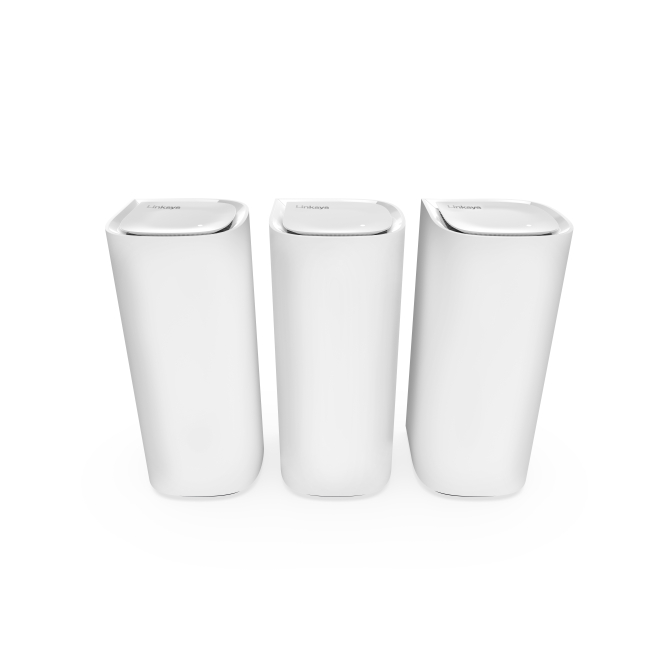 Router blanco Linksys Velop Pro 7 Tribanda con Wi-Fi 6, 2.4 GHz, 5 GHz y 6 GHz, SKU MBE7003-KE