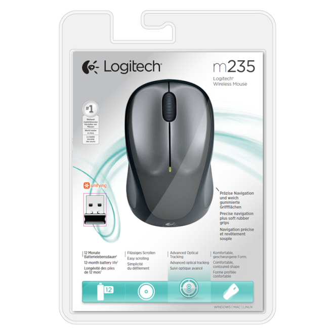 Aquí encontrará respuestas a algunas preguntas comunes sobre el ratón inalámbrico Logitech 910-002201. El Logitech 910-002201 utiliza una batería AA alcalina que está incluida en el paquete. Sí, el diseño ambidextro del Logitech 910-002201 lo hace cómodo para usuarios diestros y zurdos. La batería del Logitech 910-002201 puede durar hasta un año, dependiendo del uso y las condiciones. El ratón inalámbrico Logitech 910-002201 incluye un nanorreceptor USB tipo A, compatible con la tecnología Logitech Unifying. No, el Logitech 910-002201 es Plug and Play, compatible con PCs y portátiles sin necesidad de software adicional. Utilizar con Oficina Número de ruedas de desplazamiento 1 Interfaz del dispositivo RF inalámbrico Tecnología de detección de movimientos Óptico Resolución de movimiento 1000 DPI Tipo de botones Botones presionados Tipo de desplazamiento Rueda Cantidad de botones 3 Rueda de desplazamiento Sí Uso recomendado PC/ordenador portátil Frecuencia de banda 2.4 GHz Factor de forma Ambidextro Color del producto Gris Coloración de superficie Monocromo Alcance inalámbrico 10 m Fuente de energía Baterías Numero de baterías soportadas 1 Tipo de batería AA Tecnología de batería Alcalino Sistema operativo Windows soportado Windows 7, Windows Vista, Windows XP Sistema operativo MAC soportado Mac OS X 10.5 Leopard Sistema operativo Linux soportado Si Otros sistemas operativos soportados ChromeOS Ancho 50 mm Peso 86 g Profundidad 90 mm Altura 33 mm Ancho de receptor 14 mm Fondo del receptor 19 mm Altura de receptor 6 mm Peso del receptor 6 g Cantidad por paquete 1 pieza(s) Ancho del paquete 126 mm Profundidad del paquete 186 mm Altura del paquete 83 mm Peso del paquete 131 g Receptor incluido Sí Interfaz de receptor inalámbrico USB tipo A Tipo de receptor Nanorreceptor Receptor unificador Sí Pilas incluidas Sí Manual de usuario Sí Código de Sistema de Armomización (SA) 84716070 Ancho de la caja principal 101 mm Longitud de la caja 362 mm Alto de la caja principal 259 mm Peso del envase completo 1547 g