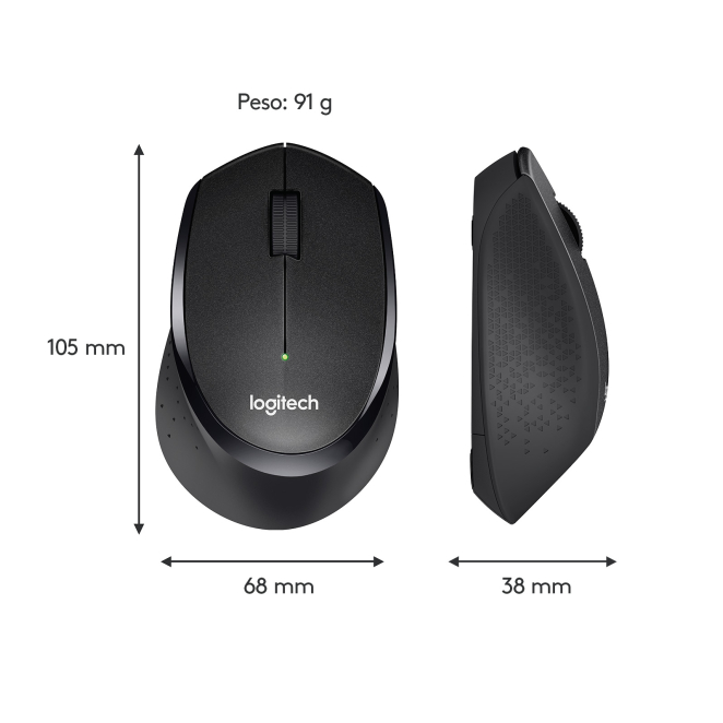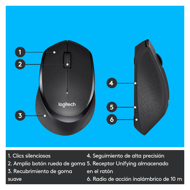 Ratón inalámbrico Logitech M330 SILENT PLUS, diseño ergonómico y operación silenciosa, SKU 910-004909 Stock disponible en nuestros almacenes Financiado desde: 0,89 € /mes Solicita información en caso de necesitar envío urgente. Métodos de pago: Logitech M330 SILENT PLUS: Ratón inalámbrico para oficina El Logitech M330 SILENT PLUS es el ratón inalámbrico que garantiza una experiencia de uso completamente silenciosa, mejorando la productividad en ambientes de trabajo con un clic hasta un 90% más silencioso que los ratones convencionales. Diseñado para la mano derecha, este ratón ergonómico es ideal para quienes buscan precisión y comodidad, ofreciendo una resolución de movimiento de 1000 DPI y una frecuencia de banda de 2.4 GHz. Su tecnología de detección de movimientos es mecánica, lo que garantiza un rendimiento fiable. El Logitech M330 SILENT PLUS se destaca no solo por su tecnología de silencio, sino también por su durabilidad y eficiencia. Con una sola pila AA, puede durar hasta 18 meses, permitiéndote olvidarte de cambios frecuentes. Su diseño ergonómico y tamaño compacto ofrecen un gran confort durante largas horas de uso. Además, su nano receptor USB garantiza una conexión inalámbrica estable hasta 10 metros de distancia. El Logitech M330 SILENT PLUS es ideal para profesionales que trabajan en entornos de oficina donde el silencio es primordial. También es perfecto para estudiantes que necesitan concentrarse en sus tareas sin interrupciones por ruidos molestos. Además, este ratón inalámbrico es ideal para quienes buscan un ratón ergonómico y de alto rendimiento para el uso diario en casa o en la oficina. El uso del Logitech M330 SILENT PLUS es notablemente cómodo gracias a su diseño ergonómico que se adapta perfectamente a la forma de la mano. La rueda de desplazamiento y los botones son altamente responsivos, facilitando tareas de navegación y edición. Además, gracias a su tecnología avanzada, el ratón ofrece una experiencia de uso precisa en prácticamente cualquier superficie. El clic silencioso es una de sus características más destacadas, permitiendo un trabajo sin ruido, lo cual es esencial en ambientes colaborativos. Describimos algunas razones para adquirir el Logitech M330 SILENT PLUS: La tecnología del clic silencioso reduce el ruido en un 90%, ideal para entornos de trabajo silenciosos. Con una sola batería AA, el ratón puede funcionar hasta 18 meses sin necesidad de reemplazo. El nano receptor USB garantiza una conexión estable hasta 10 metros de distancia. Diseñado para la mano derecha, asegura comodidad durante largas horas de uso. Funciona con la mayoría de los sistemas operativos, incluyendo Windows, Mac y Linux. A continuación, te presentamos algunas preguntas frecuentes sobre el Logitech M330 SILENT PLUS: La batería puede durar hasta 18 meses con un uso regular, lo que elimina la necesidad de cambiarla frecuentemente. Aunque es más adecuado para uso de oficina y tareas diarias, puede manejar juegos casuales debido a su precisión de 1000 DPI. Sí, es compatible con sistemas operativos Windows, Mac y Linux. No, no tiene un indicador de batería, pero la duración extendida de la batería minimiza la necesidad de un indicador. Sí, incluye un nanorreceptor USB tipo A para conexión inalámbrica. Utilizar con Oficina Número de ruedas de desplazamiento 1 Direcciones de desplazamiento Vertical Interfaz del dispositivo RF inalámbrico Tecnología de detección de movimientos Mecánico Resolución de movimiento 1000 DPI Tipo de botones Botones presionados Tipo de desplazamiento Rueda Cantidad de botones 3 Personalizable resolución movimiento No Uso recomendado Universal Frecuencia de banda 2.4 GHz Factor de forma mano derecha Color del producto Negro Coloración de superficie Monocromo Alcance inalámbrico 10 m Fuente de energía Baterías Numero de baterías soportadas 1 Tipo de batería AA Vida de batería en servicio 18 mes(es) Tecnología de batería Alcalino Puerto de carga USB tipo C No Suministro de potencia USB No Sistema operativo Windows soportado Windows 10, Windows 11, Windows 7, Windows 8 Sistema operativo MAC soportado Mac OS X 10.5 Leopard Sistema operativo Linux soportado Si Otros sistemas operativos soportados ChromeOS Ancho 67.9 mm Peso 91 g Profundidad 105.4 mm Altura 38.4 mm Ancho de receptor 14.4 mm Fondo del receptor 6.1 mm Altura de receptor 18.7 mm Peso del receptor 1.8 g Cantidad por paquete 1 pieza(s) Ancho del paquete 86 mm Profundidad del paquete 127 mm Altura del paquete 184 mm Peso del paquete 147.7 g Receptor incluido Sí Interfaz de receptor inalámbrico USB tipo A Tipo de receptor Nanorreceptor Pilas incluidas Sí Adaptador AC incluido No Manual de usuario Sí Código de Sistema de Armomización (SA) 84716070 Caja GTIN (EAN/UPC) 50992060666713 Ancho de la caja principal 101 mm Longitud de la caja 362 mm Alto de la caja principal 259 mm Peso del envase completo 1653 g Cantidad por palé 1920 pieza(s) Cantidad por contenedor (20ft) 28560 pieza(s) Cantidad por contenedor (40ft) 59520 pieza(s) Cantidad por contenedor intermodal (40ft, HC) 74400 pieza(s)