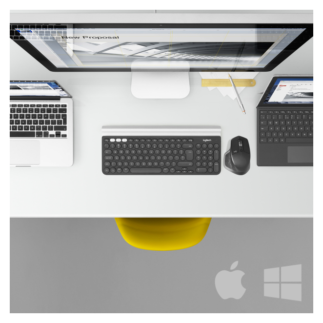 Con RF Wireless y Bluetooth puedes conectar hasta tres dispositivos simultáneamente y cambiar entre ellos fácilmente.