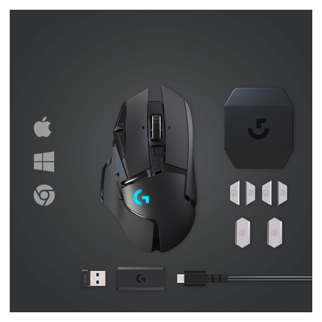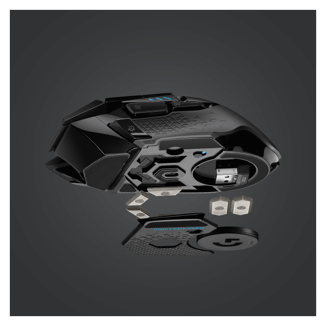 A continuación, presentamos algunas preguntas frecuentes acerca del Logitech G G502 LIGHTSPEED para resolver cualquier duda: Sí, el Logitech G G502 LIGHTSPEED es compatible con la mayoría de las plataformas de juegos, incluyendo PC y consolas, siempre que cuenten con un puerto USB. La batería del Logitech G G502 LIGHTSPEED tiene una autonomía de hasta 60 horas con una sola carga completa, lo que es más que suficiente para sesiones de juego prolongadas. El Logitech G G502 LIGHTSPEED viene con pesas adicionales que puedes agregar o quitar para ajustar el peso según tu preferencia, mejorando así la personalización y la comodidad. Los botones del Logitech G G502 LIGHTSPEED se pueden programar mediante el software Logitech G HUB, que permite configurar funciones específicas para cada botón. El diseño del Logitech G G502 LIGHTSPEED está optimizado para usuarios diestros, por lo que puede no ser ideal para usuarios zurdos. Utilizar con Juego Número de ruedas de desplazamiento 1 Interfaz del dispositivo RF inalámbrico Resolución de movimiento 25600 DPI Tipo de botones Botones presionados Tipo de desplazamiento Rueda Botones de ratón programables Sí Cantidad de botones 11 Número de botones programables 11 Personalizable resolución movimiento Sí Velocidad de seguimiento del ratón 400 ips Aceleración (máx.) 40 G Tiempo de respuesta 1 ms Frecuencia de sondeo 1000 Hz Memoria incorporada Sí Frecuencia de banda 2.4 GHz Factor de forma mano derecha Color del producto Negro Mangos de goma Sí Iluminación Sí Iluminación de color Multi Coloración de superficie Imagen Material de patas Politetrafluoroetileno (PTFE) Longitud de cable 1.8 m Fuente de energía Baterías Autonomía 60 h Numero de baterías soportadas 2 Tecnología de batería Polímero de litio Capacidad de batería 0.9 Wh Sistema operativo Windows soportado Windows 10, Windows 11, Windows 7 Sistema operativo MAC soportado Mac OS X 10.11 El Capitan, Mac OS X 10.12 Sierra, Mac OS X 10.13 High Sierra, Mac OS X 10.14 Mojave, Mac OS X 10.15 Catalina, Mac OS X 10.15.3 Catalina, Mac OS X 11.0 Big Sur, Mac OS X 12.0 Monterey Otros sistemas operativos soportados ChromeOS Ancho 75 mm Peso 114 g Profundidad 40 mm Altura 132 mm Cantidad por paquete 1 pieza(s) Ancho del paquete 68 mm Profundidad del paquete 115 mm Altura del paquete 172 mm Peso del paquete 436.1 g Receptor incluido Sí Manual de usuario Sí Código de Sistema de Armomización (SA) 84716070 Ancho de la caja principal 147 mm Longitud de la caja 244 mm Alto de la caja principal 188 mm Peso del envase completo 1928.4 g