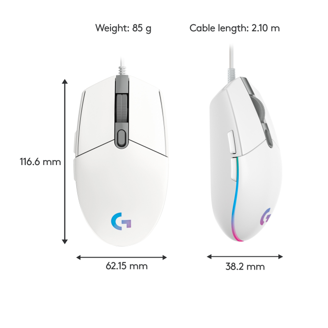 El ratón Logitech G 910-005797 tiene un cable de 2.1 metros de longitud, ofreciendo una gran libertad de movimiento.
