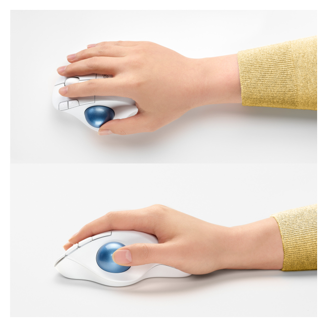 Vista del ratón ergonómico Logitech ERGO M575 con trackball, SKU 910-005870, ideal para reducir el movimiento de la mano.