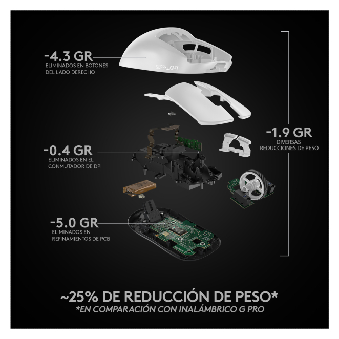 Logitech G 910-005943 ratón para juegos inalámbrico para mano derecha con sensibilidad de 25600 DPI
