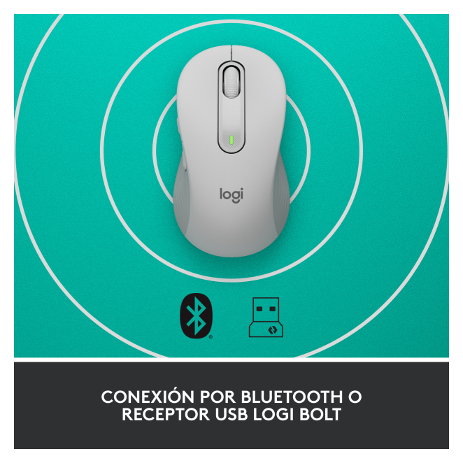 El Logitech Signature M650 puede conectarse a través de Bluetooth o mediante un receptor USB tipo A, ofreciendo versatilidad y una conexión inalámbrica estable.