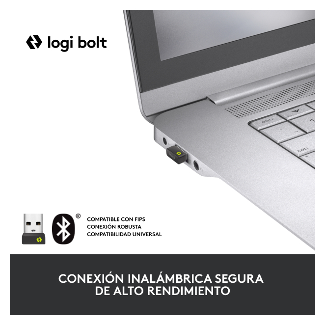 Con tecnología Bluetooth y Logi Bolt, garantiza una conexión estable sin interrupciones, ideal para entornos de oficina.