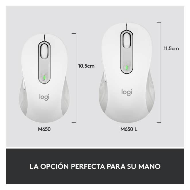 Aquí tienes algunas preguntas frecuentes sobre el Logitech Signature M650 L for Business: Sí, también es compatible con cualquier dispositivo que tenga conectividad Bluetooth. La batería dura hasta 24 meses con una sola pila AA. No, este modelo en particular está diseñado para usuarios diestros. Sí, incluye un Nanorreceptor USB tipo A. Sí, la configuración es rápida y sencilla, ideal para entornos empresariales. Utilizar con Oficina Número de ruedas de desplazamiento 1 Direcciones de desplazamiento Vertical Interfaz del dispositivo Bluetooth Tecnología de conectividad Inalámbrico Tecnología de detección de movimientos Óptico Resolución de movimiento 4000 DPI Tipo de botones Botones presionados Tipo de desplazamiento Rueda Cantidad de botones 5 Resistencia de los botones (millones de clics) 10 Factor de forma mano derecha Diseño de plancha ergonómico Sí Color del producto Blanco Mangos de goma Sí Coloración de superficie Monocromo Alcance inalámbrico 10 m Fuente de energía Baterías Numero de baterías soportadas 1 Tipo de batería AA Vida de batería en servicio 24 mes(es) Tecnología de batería Alcalino Puerto de carga USB tipo C No Sistema operativo Windows soportado Si Sistema operativo MAC soportado MacOS Sistema operativo Linux soportado Si Sistemas operativos móviles soportados iPadOS Otros sistemas operativos soportados ChromeOS Intervalo de temperatura operativa 0-40 °C Intervalo de temperatura de almacenaje -5-45 °C Ancho 66.2 mm Peso 115.4 g Profundidad 118.7 mm Altura 42 mm Ancho de receptor 18.7 mm Fondo del receptor 6.1 mm Altura de receptor 14.4 mm Peso del receptor 1.8 g Cantidad por paquete 1 pieza(s) Ancho del paquete 52.6 mm Profundidad del paquete 84.2 mm Altura del paquete 142.1 mm Peso del paquete 176 g Receptor incluido Sí Interfaz de receptor inalámbrico USB tipo A Tipo de receptor Nanorreceptor Pilas incluidas Sí Manual de usuario Sí Código de Sistema de Armomización (SA) 84716070 Ancho de la caja principal 177 mm Longitud de la caja 272 mm Alto de la caja principal 156 mm Peso del envase completo 1971 g
