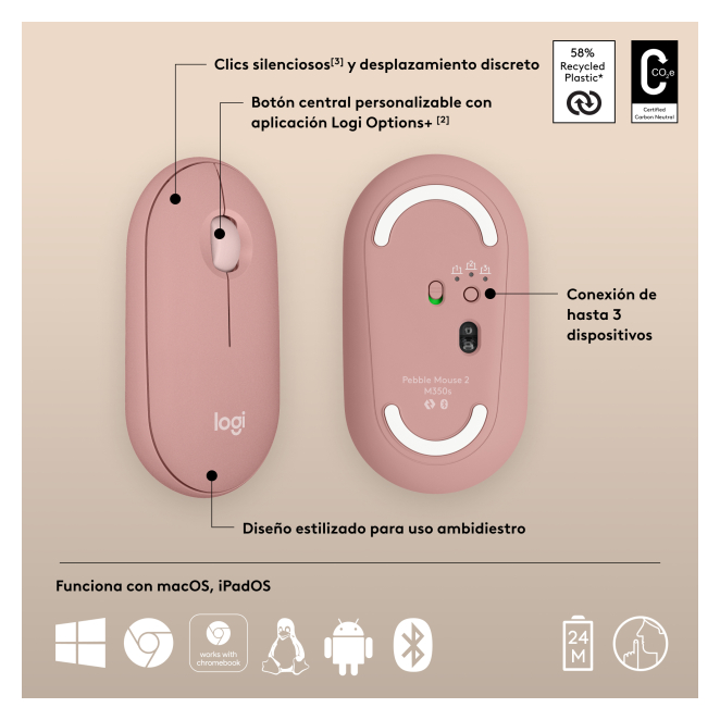 Ideal para profesionales y viajeros, el Logitech 910-007014 ratón viajes ambidextro RF Wireless + Bluetooth Óptico 4000 DPI es una herramienta indispensable para cualquier persona que necesite un rendimiento confiable sobre la marcha. Gracias a su diseño ambidextro y clic silencioso, este ratón se adapta perfectamente a cualquier tipo de usuario y entorno. Ya sea que estés de viaje, en la oficina o trabajando desde casa, este ratón te permitirá mantener tu productividad al máximo.