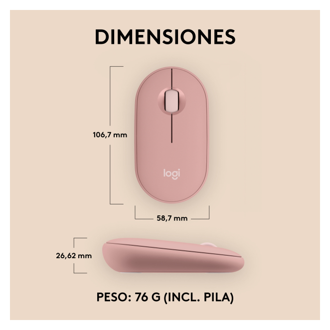 Ratón Logitech 910-007014 para viajes, ambidextro, inalámbrico con RF y Bluetooth, sensor óptico de 4000 DPI